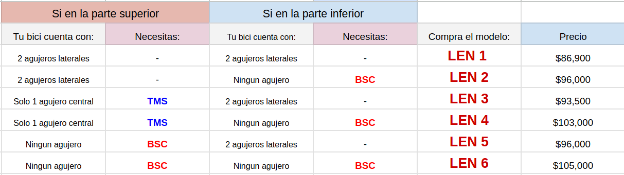 Mira la tabla (arriba), tu cuadro y elegi el LEN indicado para tu bici:
