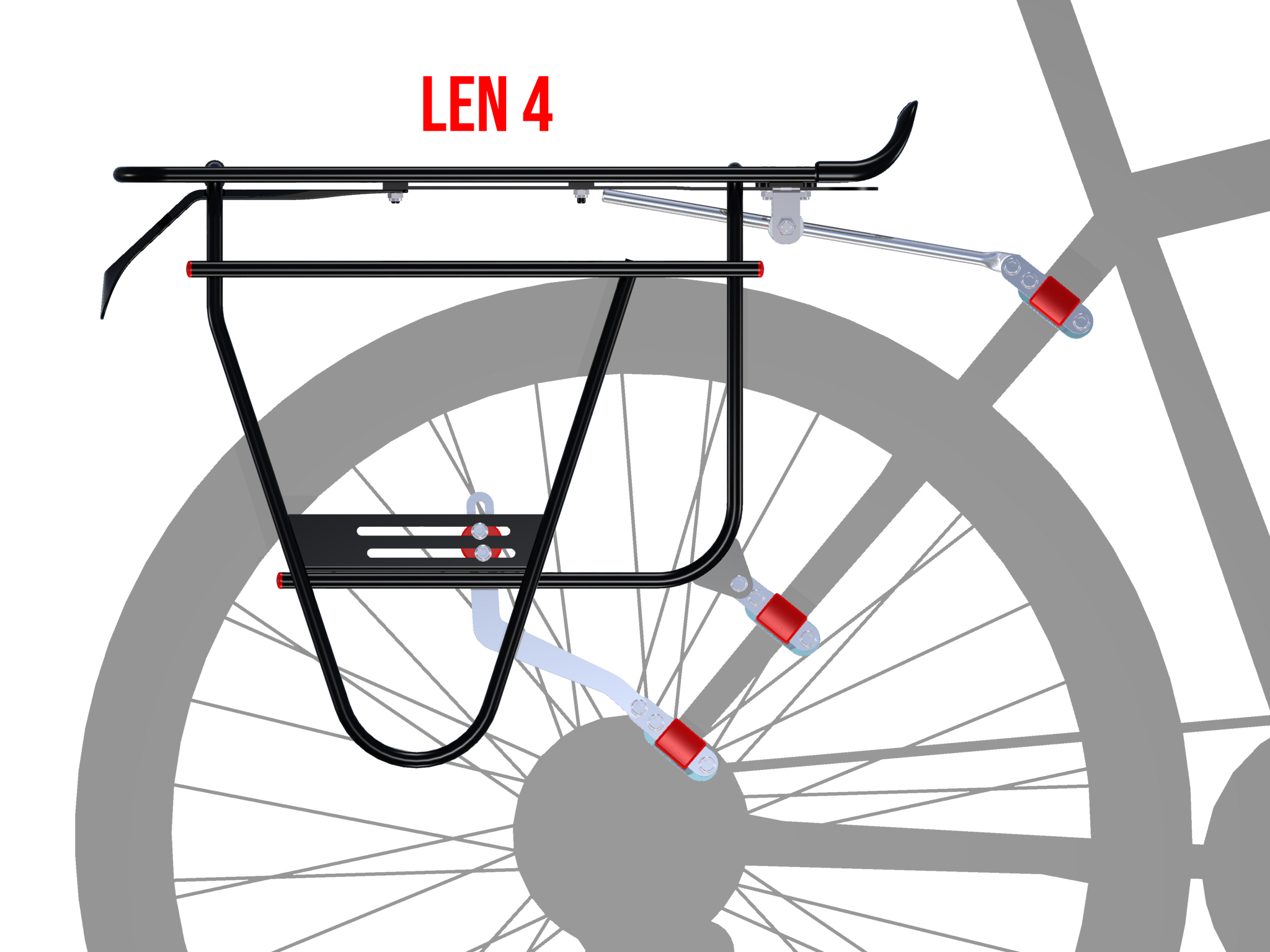 El portaequipaje LEN 1 se entrega con todos los accesorios necesarios para bicicletas con cuadro con 4 agujeros (2 arriba y 2 abajo).